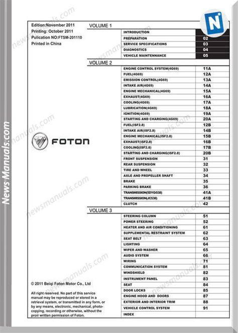 Pdf Download Foton Service Manuals Hardcover PDF
